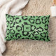 Esta almohada de patrón animal verde y negro tiene un diseño de gato al otro lado. El texto dice "Pillow Purrr-fecto para el rodaje. Personalizar el lado del patrón con sus propias iniciales. Gran decoración para la oficina de un escritor.