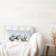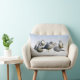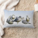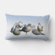 Esta almohada decorativa de tiro contiene seis gaviotas grises y blancas reunidas en la orilla en un día soleado. La imagen se repite en la parte posterior.