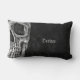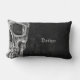 Gótica macabro temible textura de grunge negro y blanco impresión media cabeza de cráneo almohada rectangular de lanzamiento lumbar. Espléndida, espeluznante, malvada, siniestra y única decoración de salón. Personalizar tu guión. Guay, diseño moderno inspirado en Halloween. Derechos de imagen de Marg Seregelyi Photography.