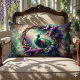 Cojín Lumbar Guirnalda floral de pavo real encantado