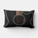 Fotografía de cierre del agujero sonoro de una guitarra acústica.