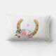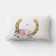 Herradura y flores en la almohada lumbar blanca.