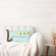 Ardilla fina y hojas de otoño sobre almohada lumbar azul claro. El texto de Hogar Dulce Hogar puede ser personalizado.