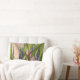 Las obras de arte de tela retro de ZoeSPEAK sobre esta almohada lumbar fueron creadas a partir de una fotografía original de hojas largas y finas de color verde a la luz del sol de tarde, arrojando sombras azules sobre la pared del estuco. Las plantas son petunias mexicanas, con tallos rojos. El estado de ánimo es la tarde de verano somnolienta de épocas anteriores.