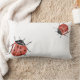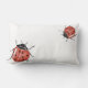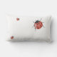 Cojín decorativo blanco con ladybugs rojos en acuarela.