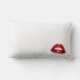 Una almohada de tiro con una imagen de manchar el lápiz labial en el frente y los labios en la parte posterior.