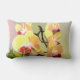 Con el aspecto de telas de seda en un patrón floral, el arte de esta almohada lumbar, en una paleta pastel, es una fotografía original de HomeWare de orquídeas amarillas a la luz del sol de la tarde. Las flores de orquídea tienen pétalos amarillos y centro morado. Un tallo verde oscuro serpentea a lo largo del centro, con un fondo pastel de color rosa que se funde en verde pálido. En la esquina inferior izquierda se pueden ver algunas hojas de color verde claro de una planta de aloe.