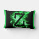 Esta almohada lumbar muestra la letra mayúscula Z en el interior de una calcomanía de efecto de color verde brillante con un tipo de letra único sobre el panel frontal y posterior con tela de tejido de punto suave sin arrugas que tiene un cierre de cremallera oculto que incluye un inserto relleno sintético. Todas las almohadas están hechas de poliéster 100% con impresión doble cara de sublimación de alta calidad.