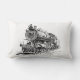 Las locomotoras viejas del tren en un fondo blanco quebradizo chug a través de esta almohada de tiro a su sofá o silla. Dos diversos trenes.