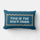Sencilla y divertida, esta almohada lumbar de doble cara azul marino y naranja pálido presenta un rectángulo ondulado y dos lados diferentes pero coordinados con mensajes de texto amistosos que recuerdan que "esta es la silla del perro" y "esta es la silla del gato" para que los visitantes sepan que tendrán competencia por un determinado asiento en la casa. ¡También puedes cambiar el texto de tu propio mensaje personalizado!