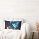 Fabuloso, brillante, azul y amarillo, mariposa nocturna sobre fondo oscuro.