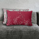 Silhouettes de ramas jazmín en gris y blanco sobre un sólido fondo rojo burdeos, abstracto, diseño moderno y orgánico para un hogar a la moda, aporta sofisticación y estilo refinado.