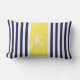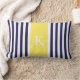 Cojín Lumbar Monograma amarillo limón de las rayas de la marina