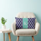 Marroquí, quatrefoil, teja, enrejado o modelo o diseño simple, elegante, moderno y de moda del enrejado para los Cojines decorativos o los amortiguadores. El fondo del color de los azules marinos y del blanco con un color verde verde azulado del acento bloquea la raya y el monograma o la inicial de encargo blanco en una fuente de muy buen gusto. Personalice su regalo añadiendo sus propias iniciales. Elija su propia fuente y colores para hacerle sus los propios. Este diseño de moda y elegante aumentará cualquier cuarto casero del sitio, del cuarto de niños, de los muchachos, de los chicas, de los niños o de los adolescentes del dormitorio de la decoración, de la sala de estar, del sofá, del salón, del dormitorio, de la oficina, del barco, de la casa de playa, del apartamento, de la universidad o de la universidad. Un regalo perfecto para sí mismo o alguien que usted ama.
