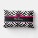 © Socialite Designs. Añada algunos elementos de diseño de moda y de color a su zona de estar con este patrón de cebra, encaje rosado caliente, monograma y almohada lumbar nombre.