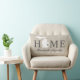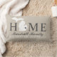 Elegante almohada de bienvenida con texto "Hogar" con el mapa del estado de Michigan y texto personalizado que puede ser personalizado con el nombre de su familia y la ciudad, donde usted vive. El marcador de la ciudad del corazón se puede trasladar a la ubicación apropiada a través de Personized. Las rayas horizontales se visten hacia el reverso. Suave color negro/onix, beige y blanco.