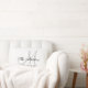Almohadón personalizado gris y blanco con el apellido y la fecha de bodas de su familia en una fuente de escritura superpuesta sobre un fondo blanco. Elke Clarke© Disponible en www.zazzle.com/monogramgallery. Es un regalo excelente para recién casados o una familia. Accesorio elegante y de moda para su dormitorio, sillón favorito, divertido decorado para su sala familiar o adición decorativa formal a su sala de estar. Otros estilos y colores disponibles en nuestra tienda.