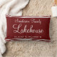 Rojo de óxido de marrón, guión blanco para Lakehouse o Beach House con sus coordenadas y nombre Lakehouse, casa de playa, moderno , guión de broche, coordenadas de mapa, longitud de la latitud, lago costero del océano , azul verde azulado acuático, verde marino, playa