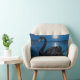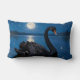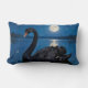 A detailed black swan glides on a calm lake under moonlight. This image features complementary colors and reflections, evoking classical academic and romantic art styles.
