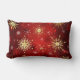 Cojín Lumbar Navidades Copos de nieve dorados con fondo rojo