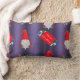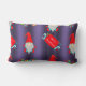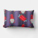 Un lindo cojín de Navidades para decorar tu casa durante las próximas vacaciones. Este lindo patrón de Navidades gnomos y elfos tienen medias de Navidades y el saludo, "Feliz Navidad" con caramelos rojos, todo en un fondo morado.