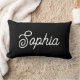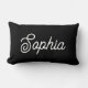 Esta elegante almohada muestra su nombre en un guión blanco retro y a la moda sobre un fondo negro oscuro.