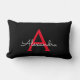 Cojín Lumbar Nombra de monograma de guión negro rojo