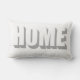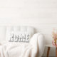 Personalizable y personalizado con el apellido de la familia, por ejemplo, en elegante caligrafía negra escrita a mano. Almohadón minimalista, moderno y de moda. Tipografía "HOGAR" en negrita con sombra gris, fácil de combinar en cualquier ambiente. Para el decorado de su hogar o como regalo creativo para recién casados o como regalo de inauguración, o regalo para nuevos propietarios. Colores neutros, gris y blanco apagado, el color natural de las almohadas de Zazzle. El texto sombreado tiene un efecto de relieve genial.