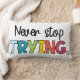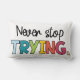 Descubra la bella e inspiradora almohada lumbar "Never Stop Trying". Añada un toque de motivación y comodidad a su espacio vital con este accesorio único y elegante.