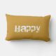 La almohada reversible de tipografía inspiradora de abeja feliz amarilla y blanca tiene una abeja en un lado y la palabra feliz en el otro lado