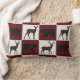 Cojín Lumbar Oso y ciervo rústicos, plazas rojas y crema oscura