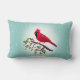 Cojín Lumbar Pájaro cardenal rojo en Verde azulado