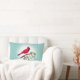 Hermoso cardenal rojo parado en una rama de árbol sobre fondo verde azulado Pillow. El texto, sólo en la parte delantera, se puede personalizar.