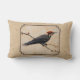 Pintura detallada de un pájaro carpintero apilado sobre una rama de árbol, acentuada por un fondo con estampado marrón.