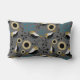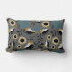 Patrón de moda con pájaros, flores, ramas con bayas sobre almohada lumbar gris. Diseño del Emporio de Jenn.
