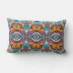 Pillow lumbar en un batik digital de grandes mariposas sobre un fondo medallón arabesco ornamentado, en tonos ámbar, naranja, aqua y beige