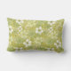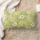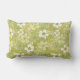 Esta almohada rectangular de tiro tiene flores y hojas en tonos blancos, verde claro y amarillo pálido.