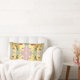 El hermoso patrón de esta almohada lumbar se ha hecho a partir de una fotografía original de orquídeas amarillas a la luz del sol de la tarde. Las flores de orquídea tienen pétalos de color amarillo pálido con centros de color rojo a morado. Un tallo verde oscuro serpentea por el centro de las flores. El fondo pastel se compone de tonos rosas que se mezclan con el verde pálido. En un rincón se pueden ver algunas hojas verdes de una planta de aloe. Cuando la foto se combina para hacer el patrón, el diseño floral se convierte en un jardín de orquídeas con el resplandor rosa del sol de la tarde en el centro.