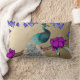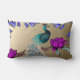 Un pavo real colorido está encaramado en una rama adornada con flores vibrantes. El fondo tiene un tono dorado con detalles texturados, realzando la elegancia general de la escena.