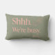Agrega un toque acogedor a tu sofá o cama con esta almohada lumbar estética de verde salvia. El diseño presenta un arte de línea de caniche durmiendo minimalista y la divertida cita "Shhh. Estamos ocupados", lo que la convierte en la decoración perfecta para el hogar de cualquier madre de perros que ame la hora de la siesta. Personalízala con el nombre de tu cachorro para crear un regalo único y sentimental para un amante de los perros.