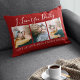 Este elegante y moderno cojín de 3 fotografías es el regalo perfecto para el día del padre, el padrastro o el abuelo. La almohada muestra el texto 'TE AMO PAPÁ, MUCHO AMOR, HUGS & KISSES XOXOXO', más 3 de tus fotos familiares favoritas, con lo mismo al revés. El texto se edita fácilmente y los estilos de fuente, tamaños y colores pueden cambiarse haciendo clic en el enlace posterior del personalizar después de la personalización.
