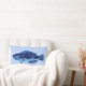 almohada lumbar en un ilustracion vintage de color digital y realzado de un pez tropical, comúnmente encontrado en arrecifes de coral (Wrasse de Halichoeres), de color azul marino/índigo sobre un fondo azul pastel