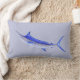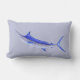 Esta almohada ofrece un pescado artístico de la aguja azul en un fondo gris.
