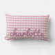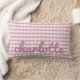 Cojín Lumbar Pilar rosado de Gingham con nombre en letra manusc