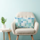 Una almohada de azulejos geométricos azul, verde azulado, turquesa y verde. Hermoso para un interior moderno o una casa de playa.