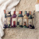 Se muestra una almohada con una botella de vino impresa en la parte delantera y un color sólido de vino en la parte posterior. Personalizar este artículo o compra tal cual.