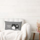 almohada de lumbar blanco y negro con las palabras "Ten cuidado con el perro". El texto se puede personalizar. Hace un regalo divertido para cualquiera que ame un Pommie. Visita el Doodle World de Jenn para ver más adorables decoraciones y regalos de casa con este lindo perro caricaturista de Pomerania.