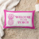 Bienvenidos a su porche con esta almohada tropical de porche de inspiración tropical que incluye una piña rosa sobre blanco con un borde rosa a juego en la parte delantera y rosa sólido en la parte trasera. Personaliza con tu elección de nombre o texto especial.