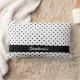 almohada lumbar personalizada con motivos de puntos de polka blanco y negro. La polka negra se pega sobre un fondo blanco y una banda negra con tu nombre personalizado.