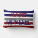 Cojín Lumbar Rayas modernas, azul rojo blanco, nombres de dos p